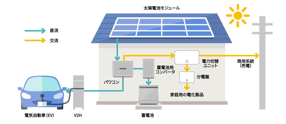 EVを蓄電池として有効活用するためにも太陽光発電システムやV2Hの導入を検討することは、将来的にたいへん有望です。