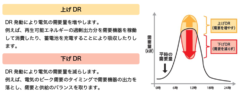 DRプログラムに関しては、主に電気使用量を抑える「下げDR」が求められているのが特徴です。