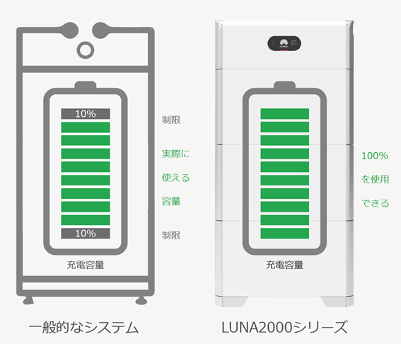 その点、なんとファーウェイ蓄電池は容量分をすべて使用することができます。