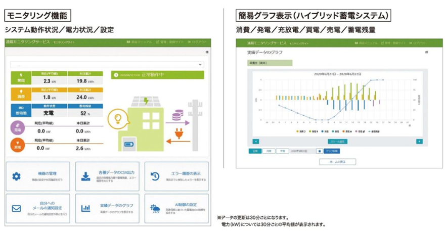 HEMS等の追加機器なしで、スマホやパソコン、タブレットなどから発電や消費、充放電などの電力状況を確認できます。
