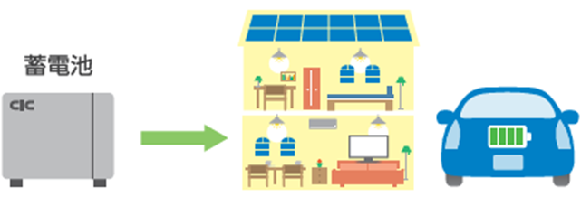 余剰電力は蓄電池に充電、夜までできるだけ自家消費を優先。 さらに、夜間電力を充電し活用することも可能。 |
