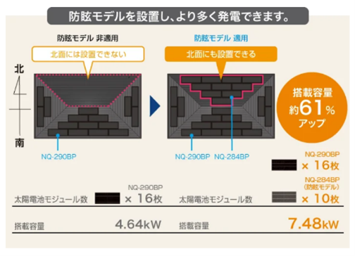 そういった要望にも、防眩モデルのパネルを利用することで、従来は設置できなかった北面の屋根を生かした設備増強が可能です。