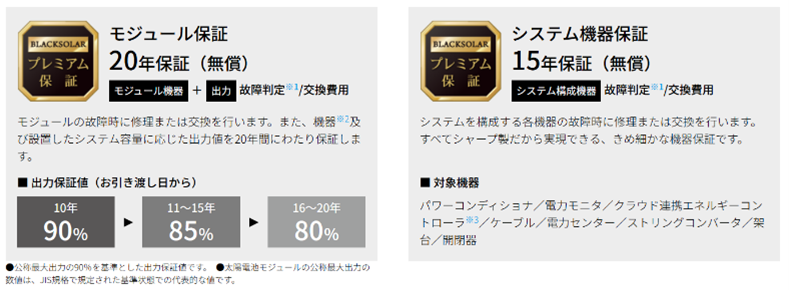 しかし、シャープのブラックソーラープレミアム保証はオンサイト保証といって、機器の脱着といった交換工事に関する費用も保証内容に含まれます。