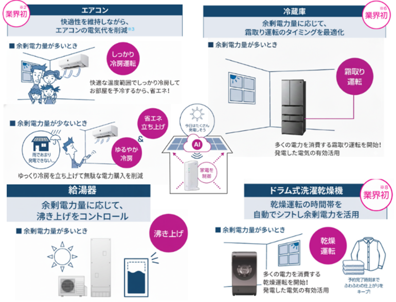余剰発電量が多いとAIが判断した場合、昼間にエコキュートなどを一定量湧き上げてくれるため、自動的に電気料金の削減が可能です。
