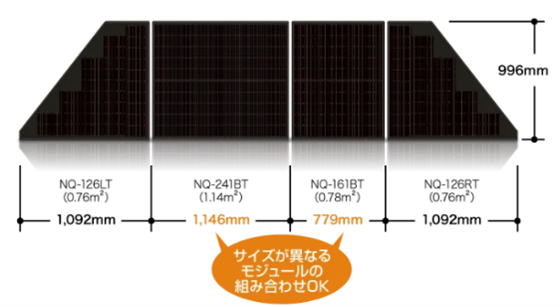 どんな屋根にもフィットするように様々な形状・特徴を兼ね備えたラインナップとなっており、経済効果や停電対策に必要な設置容量を満たしやすいのが特徴です。