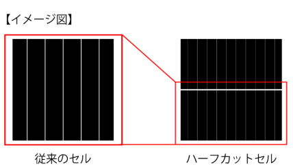 次世代N型TOPConセルとハーフカットセルが採用されており、セル内部の電気抵抗減により抵抗熱発生による出力減少が抑制されたことで、夏季などの高温時でも高い出力で安定した発電を実現しています。