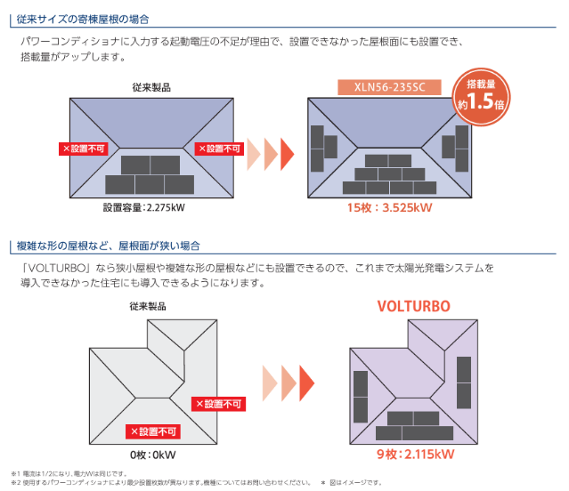 VOLTURBO(ボルターボ)の特徴:寄棟屋根に適した小型パネル