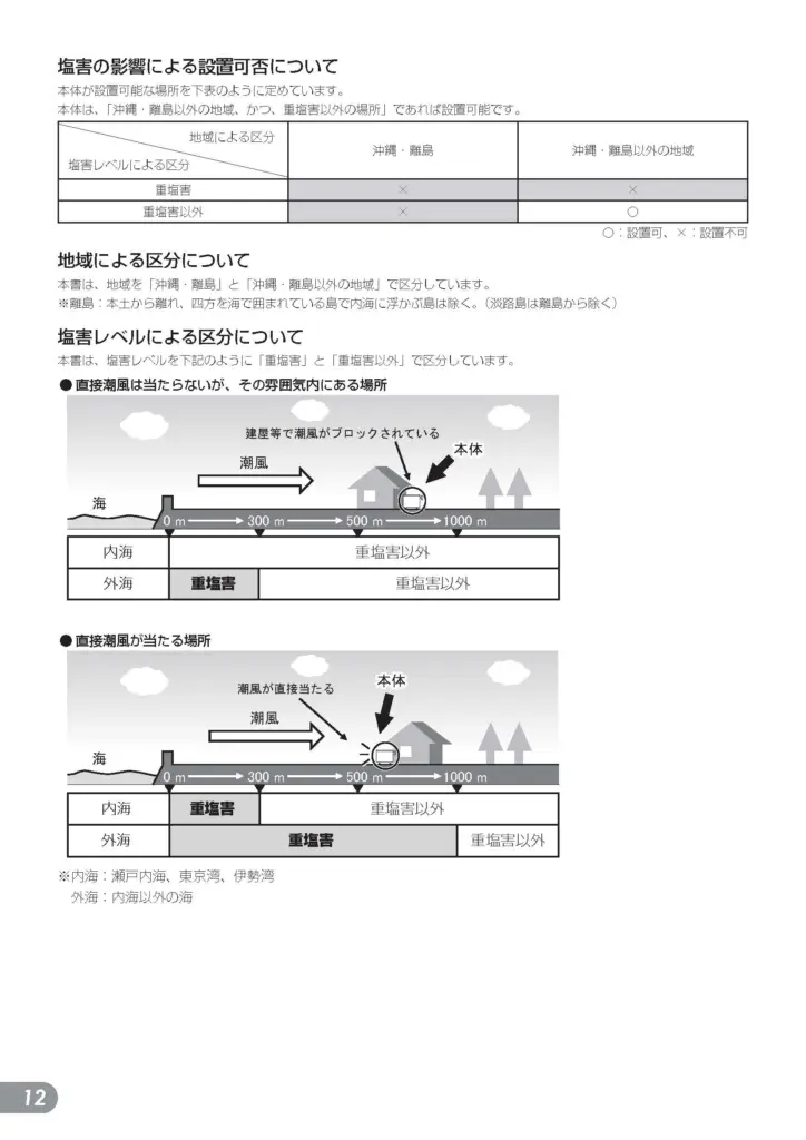 塩害地帯の設置は不可